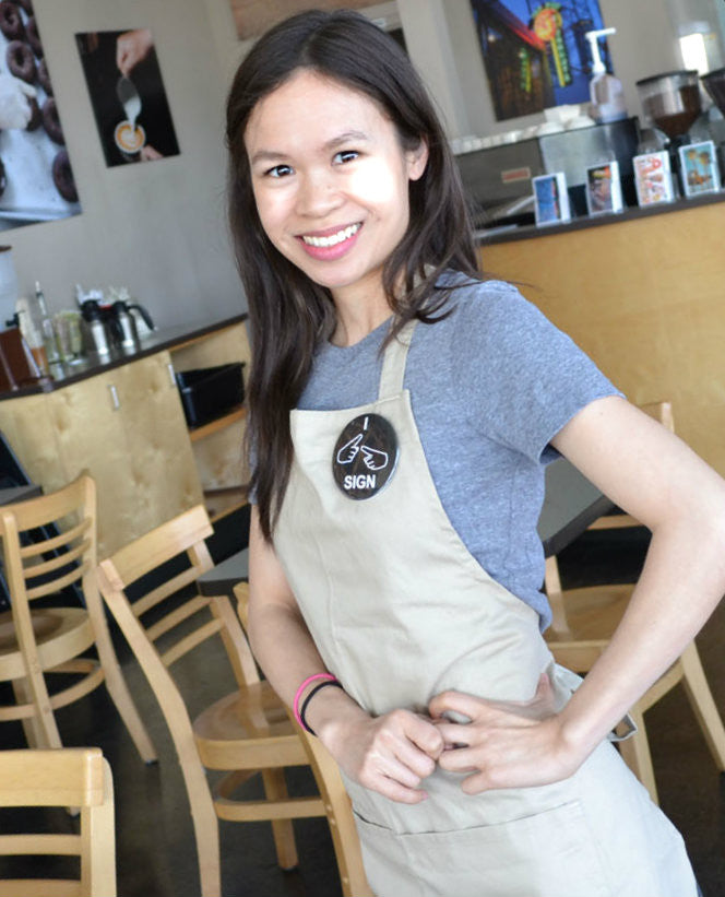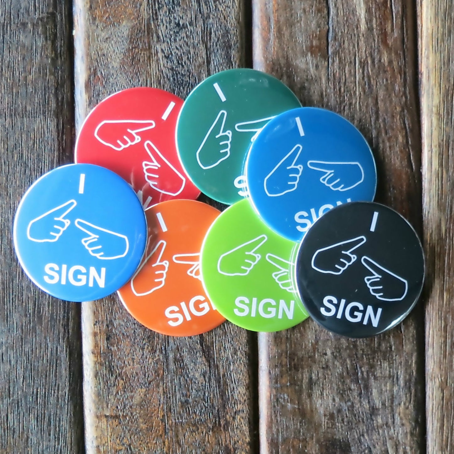 Got #deaffriendly signing staff? Put a button on it! Our "I Sign" buttons are perfect for retail, hospitality, dining, banking, medical and almost any industry you can imagine. Bold, bright, and iconic, these eye-catching buttons will make your signing staff easy to spot from a distance for effective communication in Sign Language with Deaf customers.